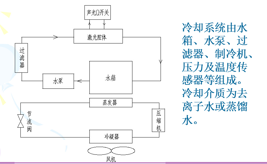 激光水冷系统开机3分钟之后,才可开激光电源。