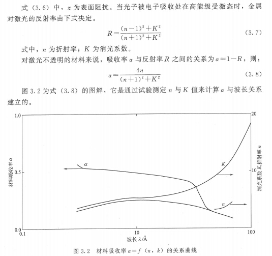 在本试验中,波长、温度、表面粗糙度及涂层等多种因素影响钛合金对激光的吸收率。钛合金基材对激光的吸收表示为激光能最向固体钛合金传输。一旦试验所用激光束中的光子人射到金属晶体中,在人射激光强度不引起金属晶体结构发生根本性重构的前提下,光子与公有化电子的相互作用将决定金属对激光束能里的吸收。在光子被电子吸收的作用下电子由原来的能级状态跃迁到高能级状态。