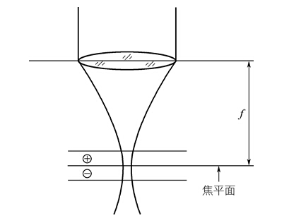 对于能够正常焊接的激光功率(或是脉冲能量),在焦平面处的激光功率密度往往已经超过激光焊接所需的功率密度,在焦点位置焊接,可能会出现金属汽化、熔渣飞溅或是打孔现象。正确焊接技术是使焦平面离开工件表面一小段距离,这个距离称为离焦量。如图3.15所示,以工件表面为准,焦平面深入工件内部称为负离焦,焦平面在工件之外称为正离焦。
